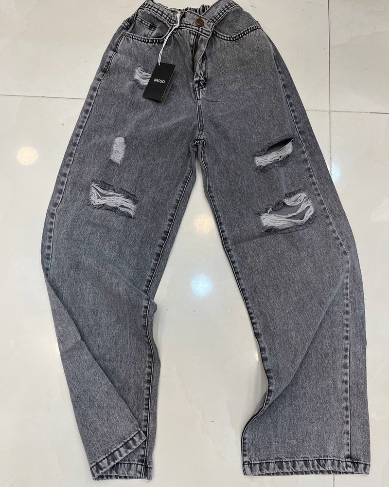 شلوار بگ جین زاپ دار خاکستری زنانه