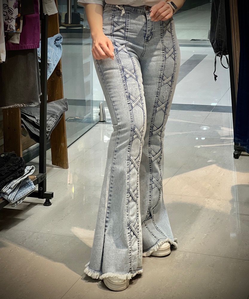 شلوار جین دمپا طرح دار پایین ریش زنانه