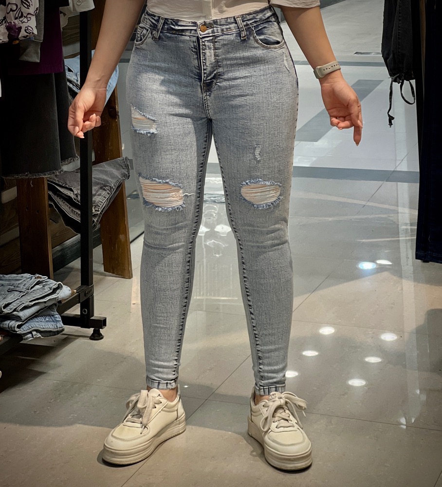 شلوار جین اسکینی زاپ دار ابی روشن زنانه [127-2]