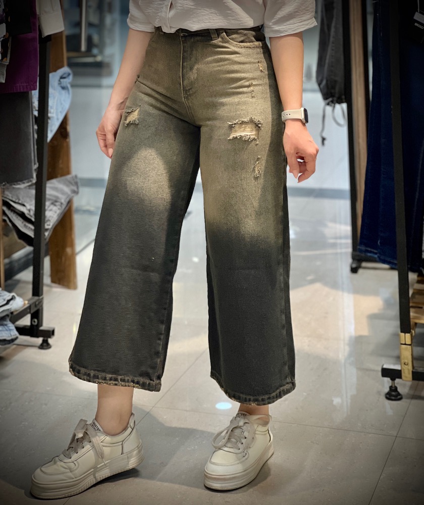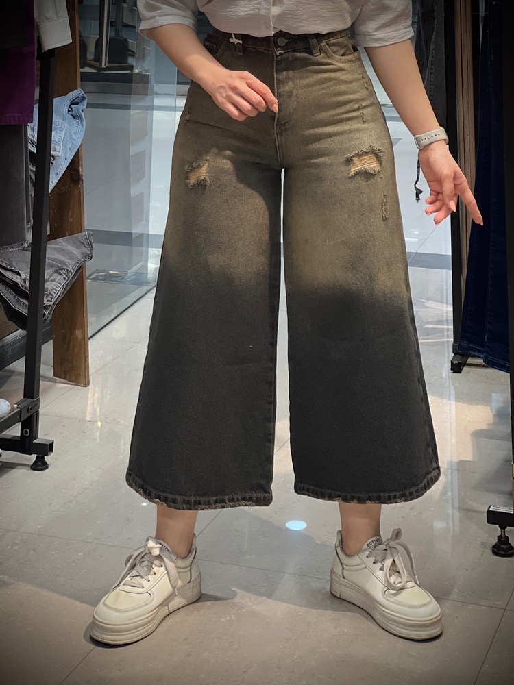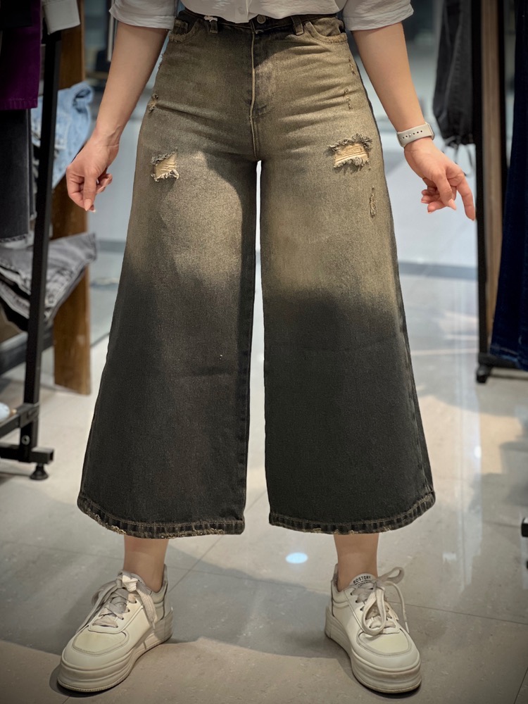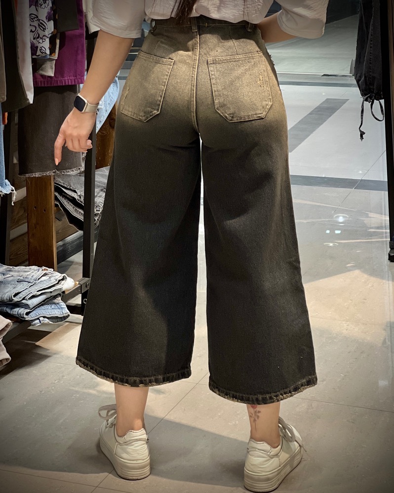 شلوار جین واید بگ قد 90 زاپ دار زنانه