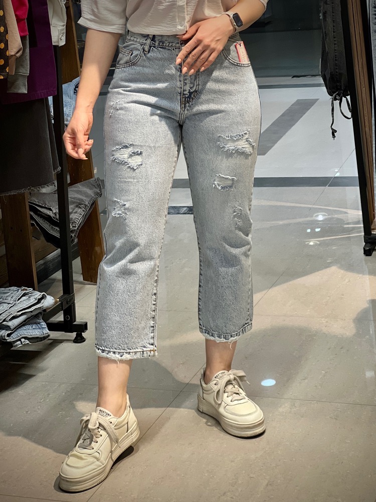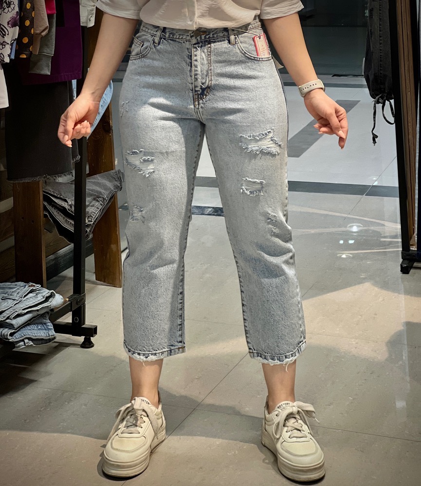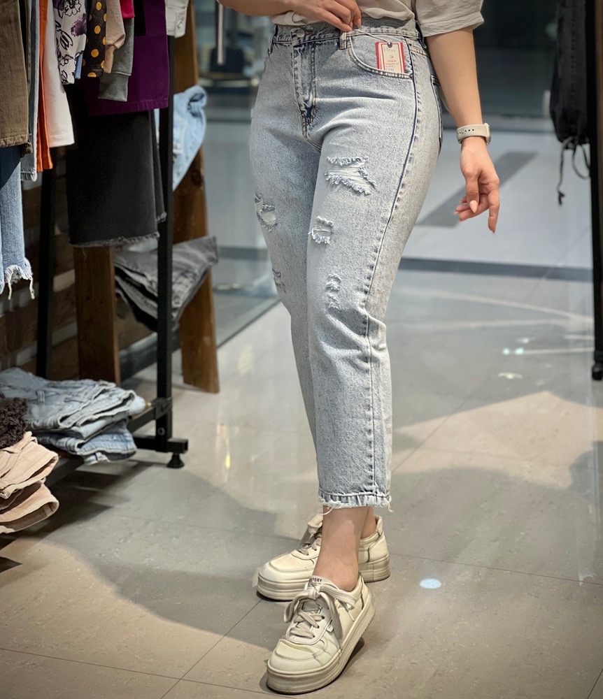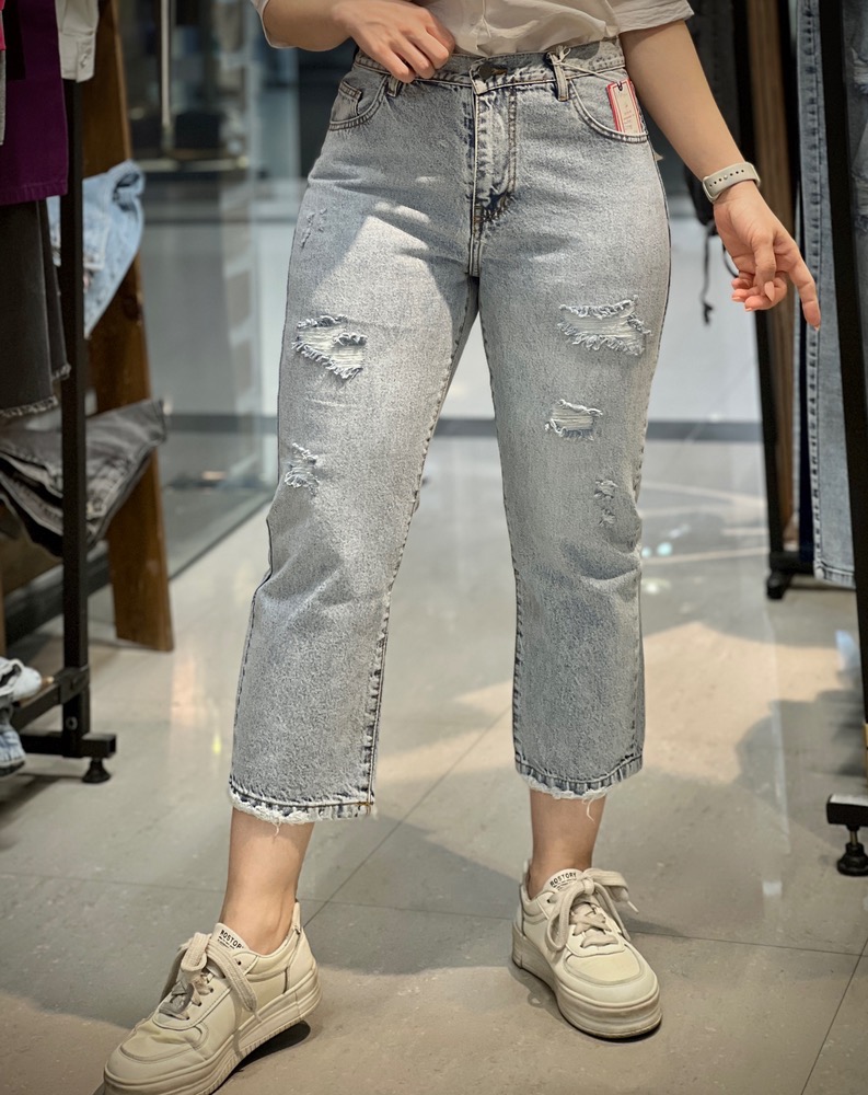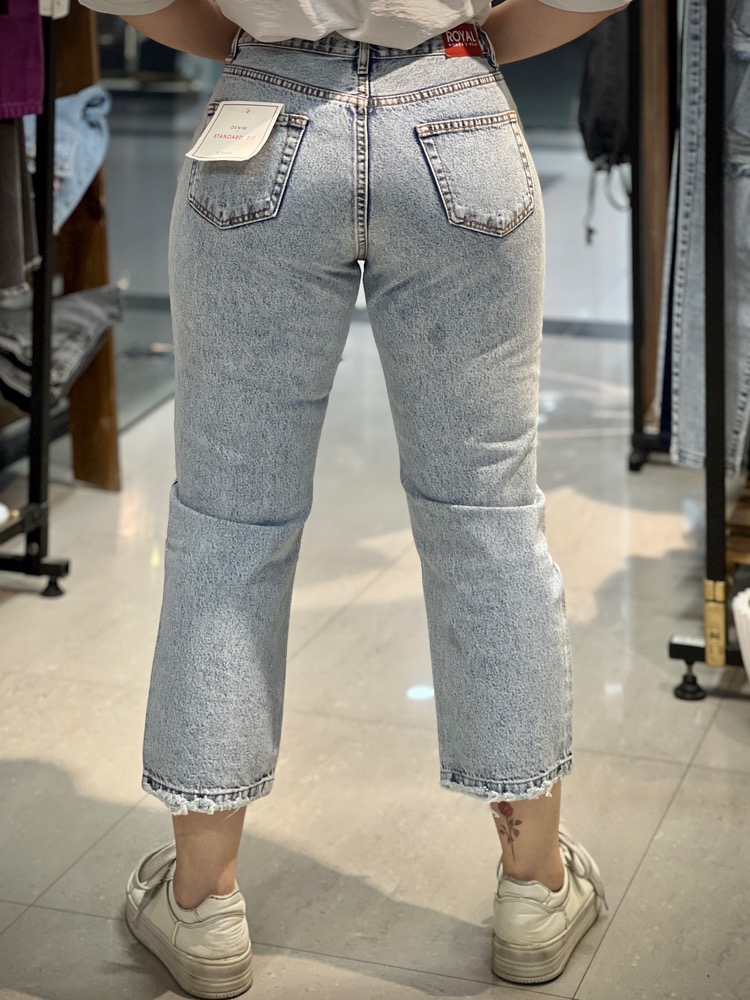 شلوار جین واید استریت زاپ دار قد 90 ابی یخی زنانه [ 57798 ]