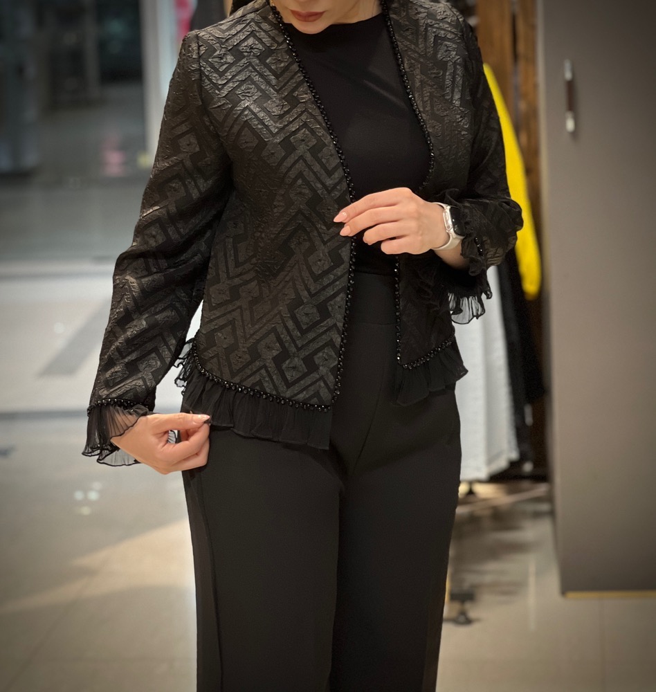کت تک کوتاه مشکی زنانه از پارچه ژاکارد با طراحی منحصر به فرد و شیک ساخته شده است. این کت با رنگ مشکی کلاسیک و طراحی زیبا، انتخابی عالی برای مهمانیها و مجالس رسمی است. جنس ژاکارد آن باعث میشود کت بهصورت طبیعی روی بدن بنشیند و راحتی و زیبایی را با هم به ارمغان بیاورد. طراحی کوتاه آن ظاهری مدرن و شیک به شما میدهد که میتوانید به راحتی آن را با دامن یا شلوارهای رسمی ترکیب کنید. برای خانمهایی که به دنبال لباسی شیک، راحت و مناسب برای موقعیتهای خاص هستند، این کت یک انتخاب ایدهآل است