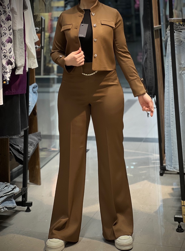 کت کراپ و شلوار بگ پشت کش کرپ کج راه زنانه