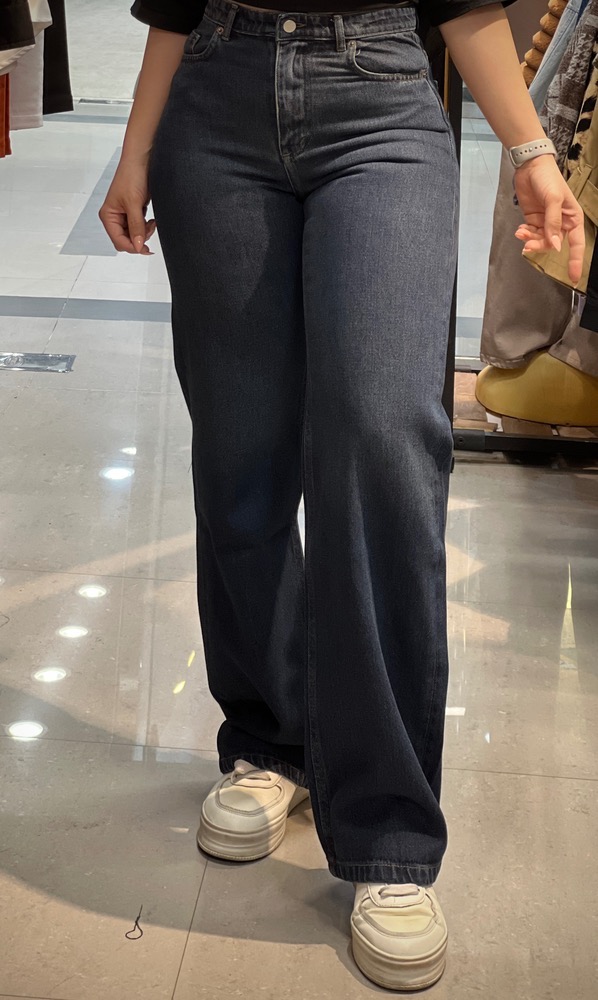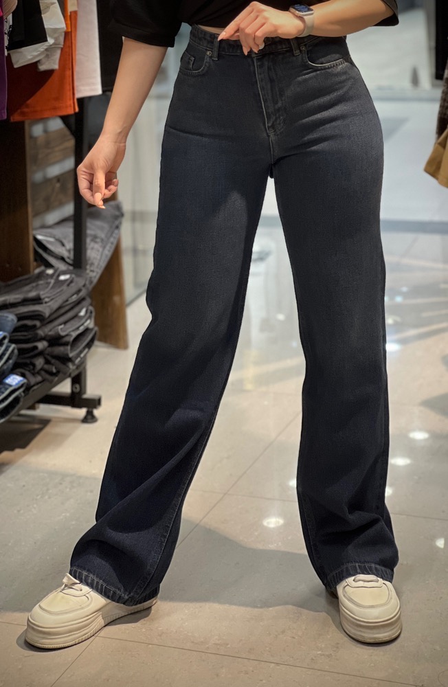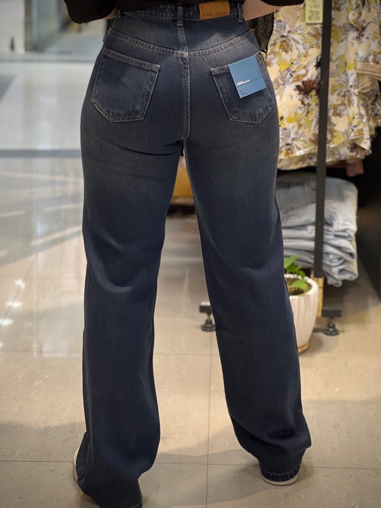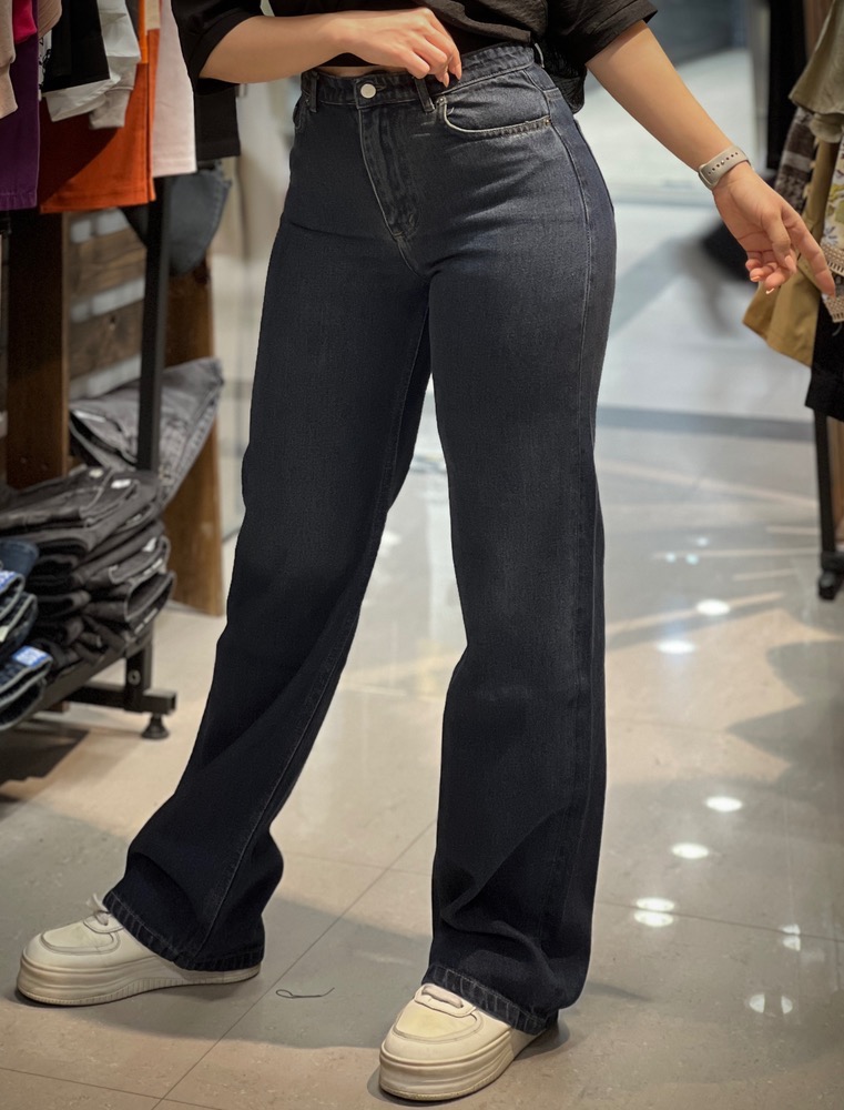 شلوار جین نیم بگ ابی تیره خام شور زنانه پارچه ترک و دوخت تهران برند LINZO