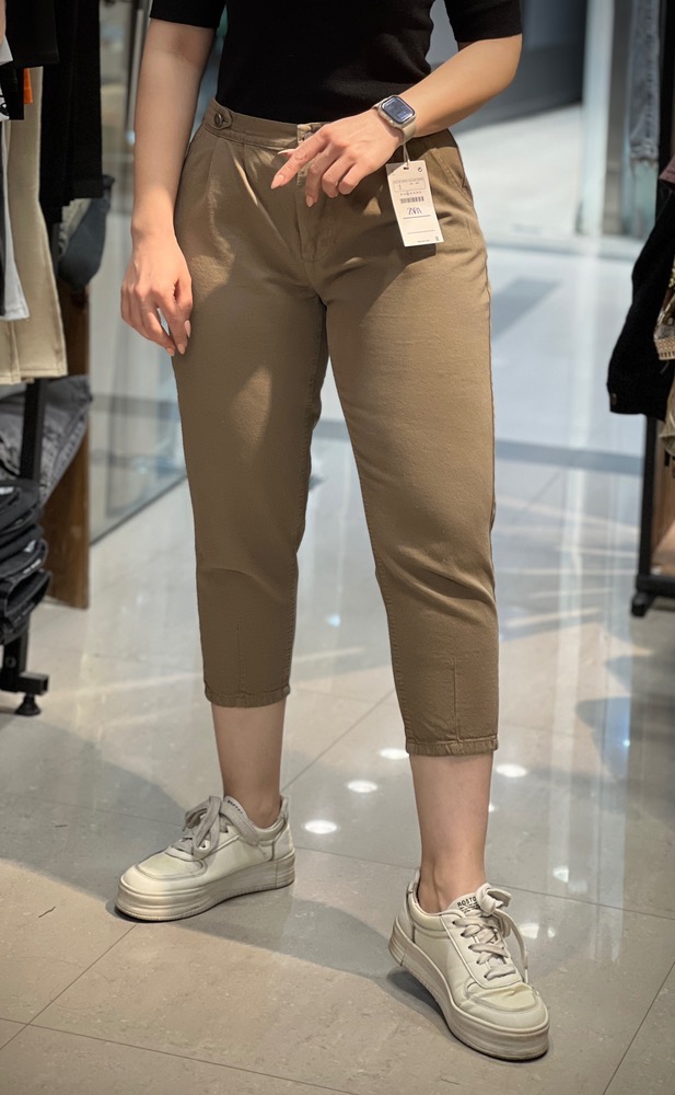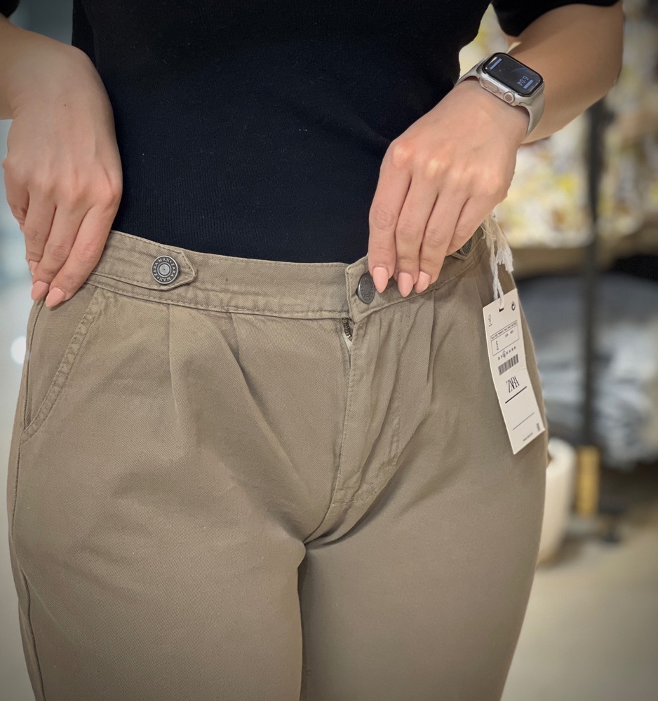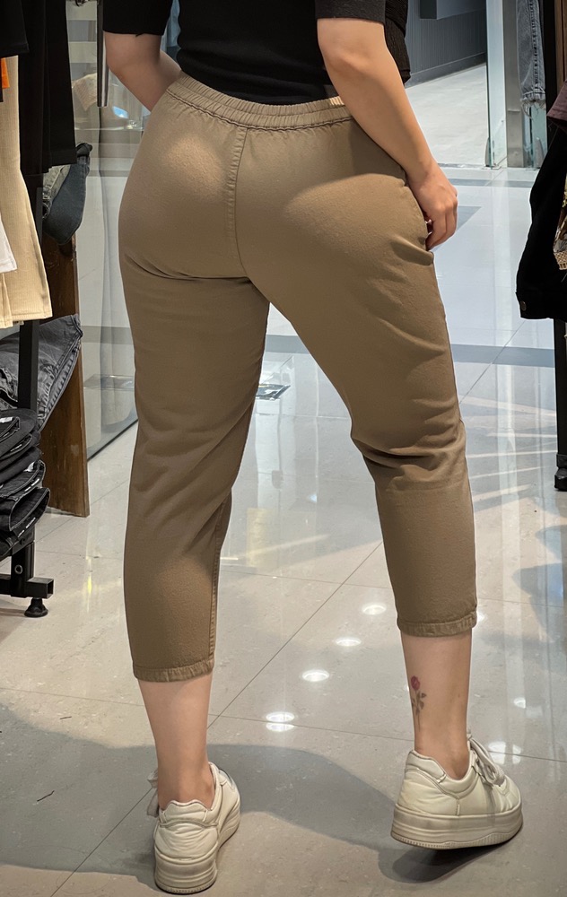 شلوار مام استایل کتان نسکافه ای قد 80 زنانه [ کد 31270 ]