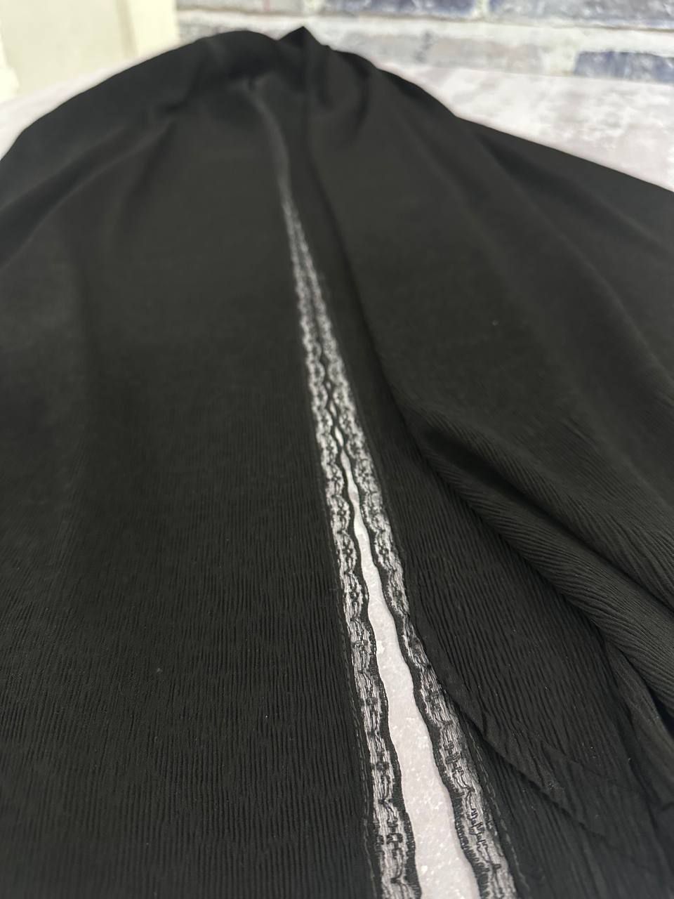 شال پلیسه کرپ دور گیپور [ مشکی تک ]