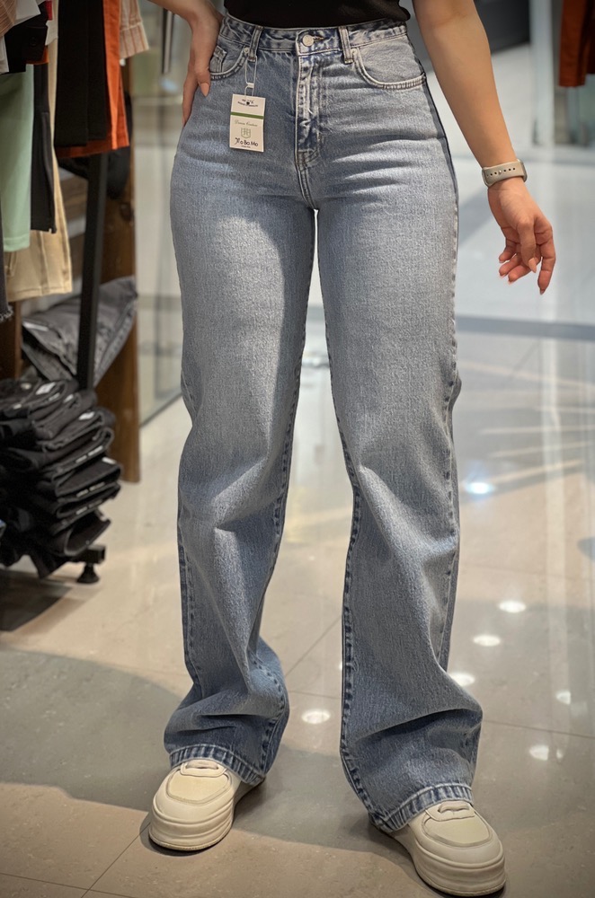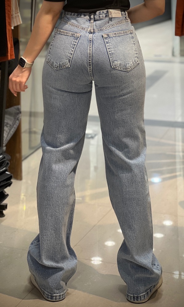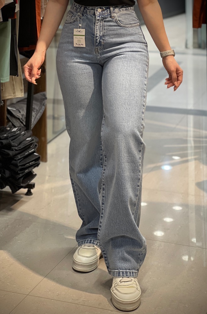 شلوار جین زنانه مدل نیم بگ ابی روشن برند موبامو پارچه ترک دوخت تهران کار شیک و با ضمانت و خوش پا