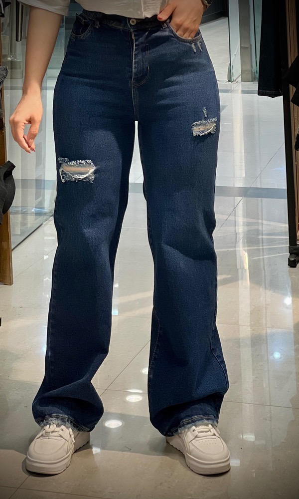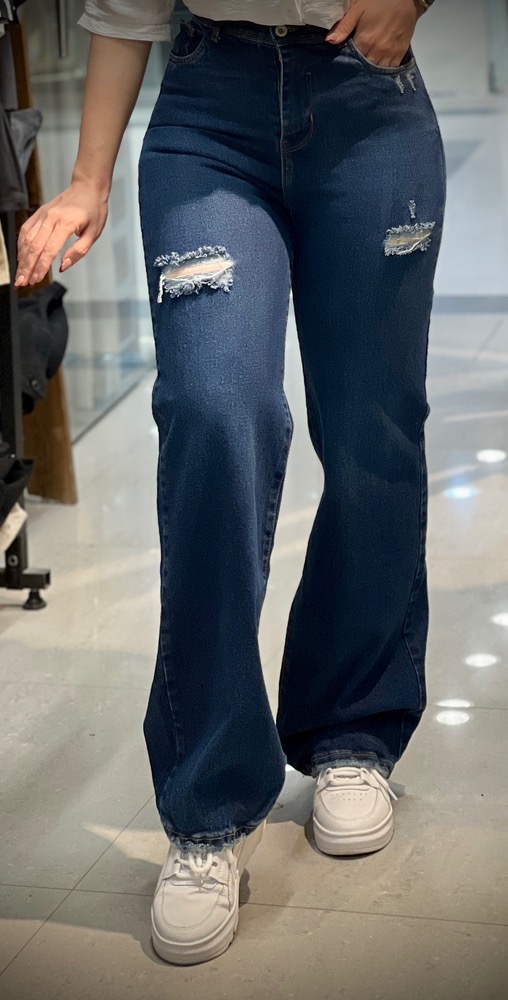 شلوار جین راسته زاپ دار پشت کش ابی تیره زنانه [ کد 5903/1 ]